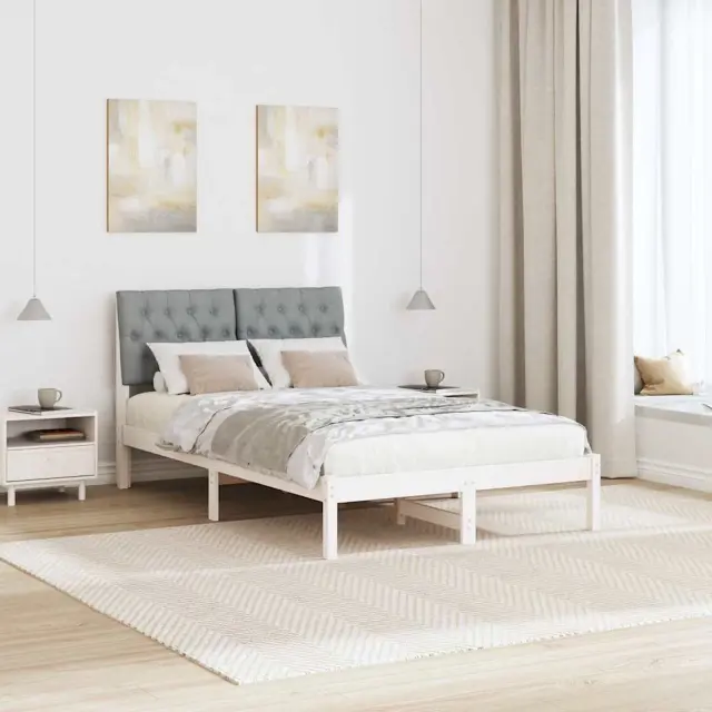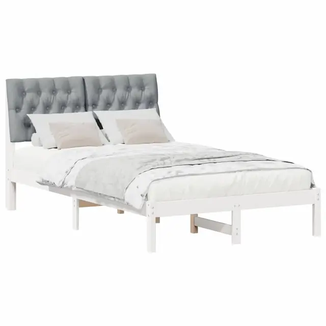 vidaXL Posteljni okvir z oblazinjenim vzglavjem Bela 120 x 190 cm