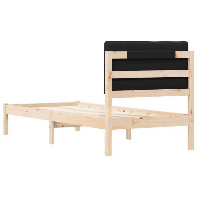vidaXL Posteljni okvir z oblazinjenim vzglavjem Črna 75 x 190 cm