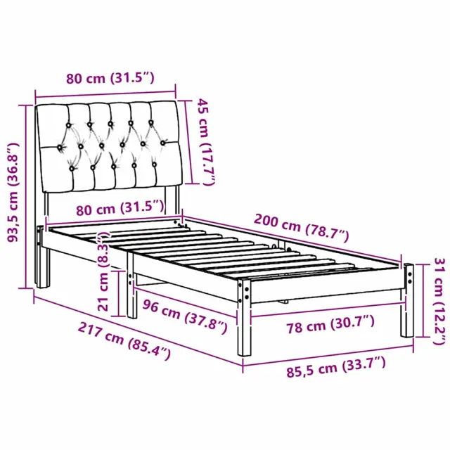vidaXL Posteljni okvir z oblazinjenim vzglavjem Rjava 80 x 200 cm