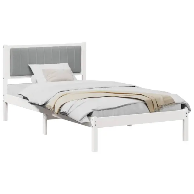 vidaXL Posteljni okvir z oblazinjenim vzglavjem Svetlo siva