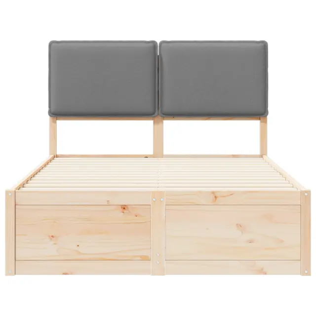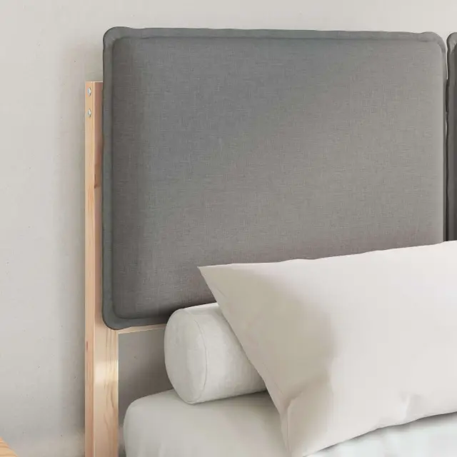 Ta elegantno zasnovan okvir za posteljo z oblazinjenim naslonom prinaša moderno preprostost z čistimi linijami in minimalnim okrasjem, ki obogatita vsak spalni prostor. Njegova trdna konstrukcija iz borovega lesa zagotavlja trajnost in naravno toplino. Poskrbi, da boste brezskrbno spali, saj ponuja močno podporo z letvičastim dnom, kar odpravi potrebo po boxspringu in povečuje udobje. Ne glede na to, ali iščete minimalističen ali moderni stil, ta postelja izpolni vaše želje.