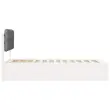 Ta leseni okvir postelje z oblazinjenim naslonom žari s sodobnim stilom, ki je popoln za vsako moderno spalnico. Njegova pravokotna oblika in minimalističen stil ustvarjata breztruden eleganten osrednji kos, ki zagotavlja tako udobje kot funkcionalnost.