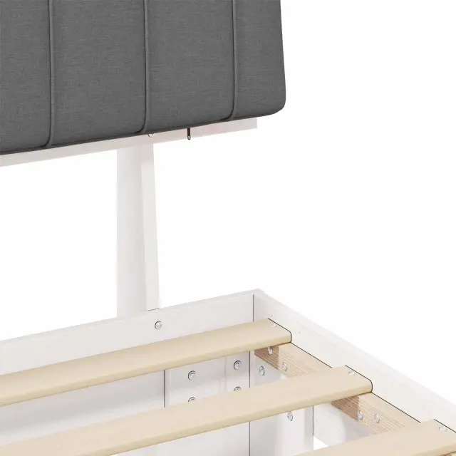 • Vključeni sestavni deli: S svoje oblazinjenim vzglavjem ta okvir postelje ponuja tako vizualno privlačnost kot dodatno udobje. Mehka pena v vzglavju nudi udobno površino za naslon, kar izboljšuje izkušnjo ob zaspavanju. Ta premišljena vključitev zagotavlja, da je vsaka noč prepletena z udobjem in stilom.