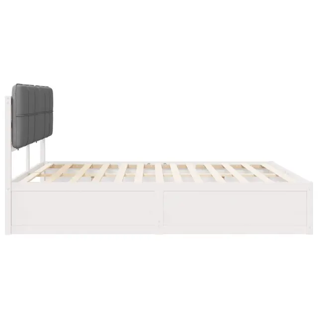 Ta leseni okvir postelje z oblazinjenim naslonom žari s sodobnim stilom, ki je popoln za vsako moderno spalnico. Njegova pravokotna oblika in minimalističen stil ustvarjata breztruden eleganten osrednji kos, ki zagotavlja tako udobje kot funkcionalnost.