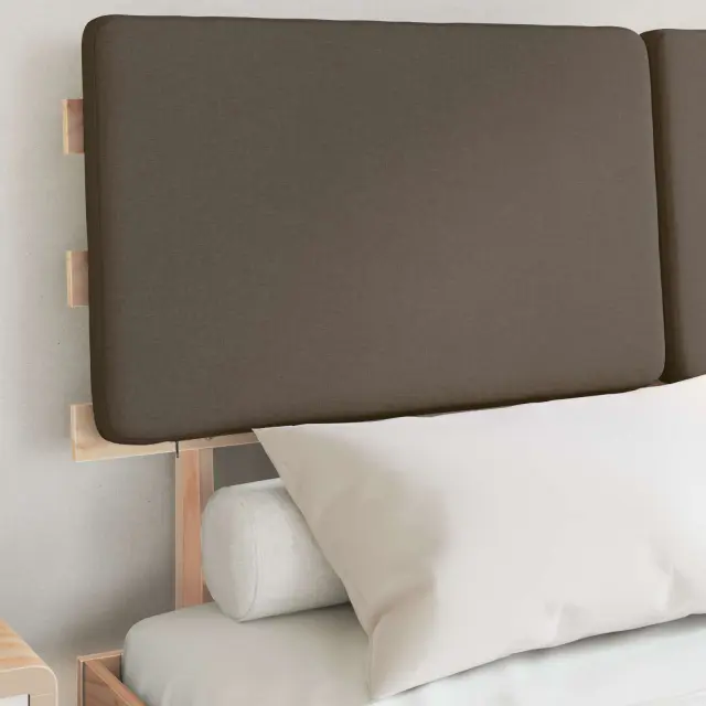 vidaXL Posteljni okvir z oblazinjenim vzglavjem Taupe 135 x 190 cm