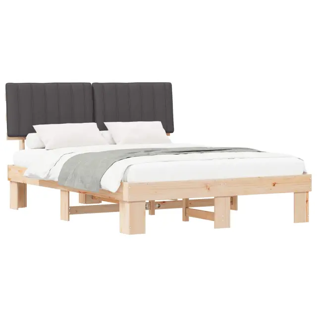 Ta leseni okvir za posteljo z oblazinjenim vzglavjem je zgled sodobnega oblikovanja, ki združuje preproste linije s funkcionalno eleganco, kar je popolno za sodobne spalnice. Zasnovan za notranjo uporabo, njegova trdna borova lesena konstrukcija nudi stabilno in stilsko središče, ki vabi tako k počitku kot k vizualni harmoniji. Oblazinjenje na vzglavju dodaja mehak kontrast, ki prinaša estetiko in udobje v ambient sobe.