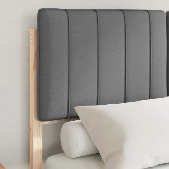 Ta lesena postelja z oblazinjenim naslonjalom je super osrednji kos v vsaki spalnici. Združuje sodoben slog z funkcionalnostjo in udobjem. Njene elegantne linije in minimalistična zasnova nudijo sodoben estetski pristop, kar jo dela privlačno za vse, ki želijo popraviti eleganco svojega spalnega prostora. Njena nevtralna barvna paleta se brez težav prilega različnim stilov dekoracije.