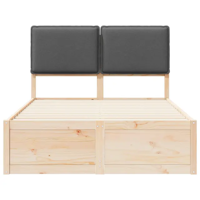 Ta elegantno zasnovan okvir za posteljo z oblazinjenim naslonom prinaša moderno preprostost z čistimi linijami in minimalnim okrasjem, ki obogatita vsak spalni prostor. Njegova trdna konstrukcija iz borovega lesa zagotavlja trajnost in naravno toplino. Poskrbi, da boste brezskrbno spali, saj ponuja močno podporo z letvičastim dnom, kar odpravi potrebo po boxspringu in povečuje udobje. Ne glede na to, ali iščete minimalističen ali moderni stil, ta postelja izpolni vaše želje.