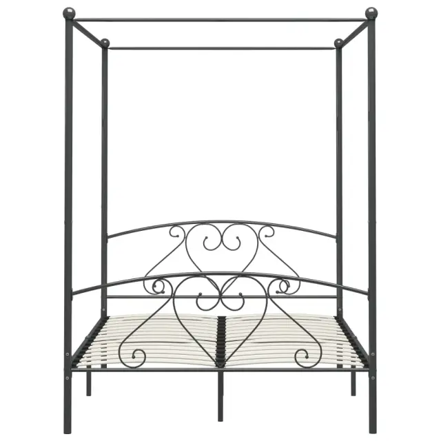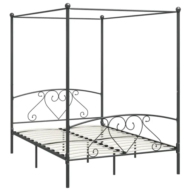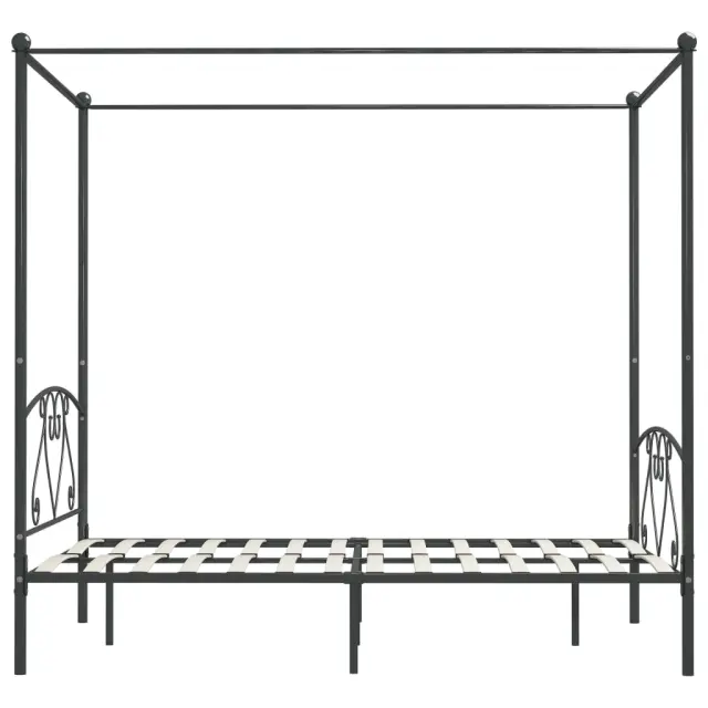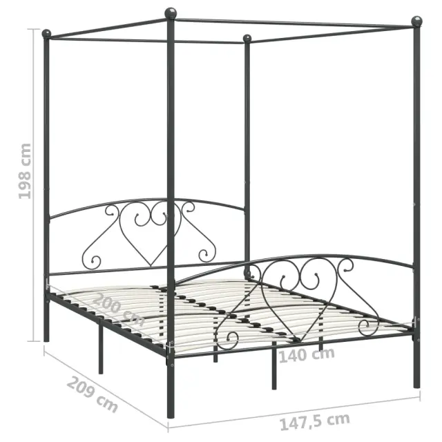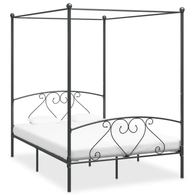 vidaXL Posteljni okvir z ogrodjem za baldahin siv kovinski 140x200 cm