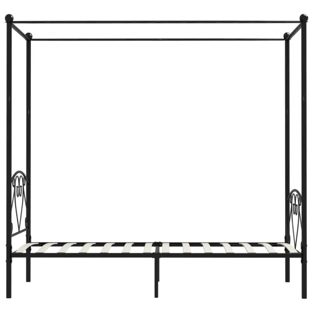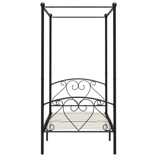 vidaXL Posteljni okvir z ogrodjem za baldahin črn kovinski 90x200 cm
