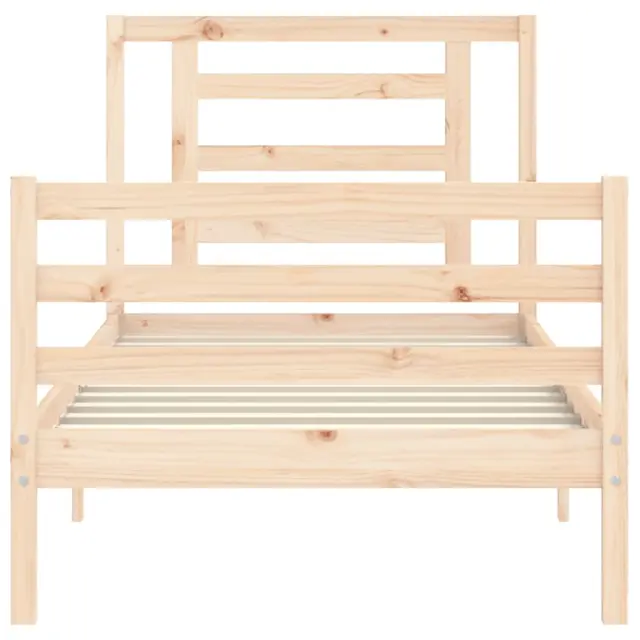 S tem lesenim posteljnim okvirjem lahko uživate v odličnem spancu! To je praktičen in dekorativen dodatek za vaše notranje prostore. Vzdržljiv material: Trdna borovina je čudovit naravni material. Borovina ima ravne vzorce, grče pa dajejo materialu njegov značilen, rustikalen videz. Ta postelja je izdelana iz trdnega borovega lesa, zato je trpežna in vzdržljiva.Letvice iz vezanega lesa: Letvice iz vezanega lesa zagotavljajo dobro porazdelitev teže, kar ležišču zagotavlja prepotrebno oporo in zračnost.Funkcionalno vzglavje in podnožje: Vzglavje in podnožje lesene postelje ohranjata ležišče na mestu. Poleg tega vzglavje zagotavlja odlično oporo hrbtu, ko sedite v postelji in berete ali gledate televizijo. Dobro je vedeti: Vzmetnica ni priložena tej postelji. Ponujamo različno izbiro ležišč. V naši trgovini si lahko ogledate ustrezne vzmetnice.Nekateri deli vzglavja so zaradi prostorskih omejitev zapakirani v škatlah v okvirju postelje.Material: Trdna borovina (neobdelana)Material letvic: Vezan lesCelotne dimenzije postelje: 205,5 x 95,5 x 100 cm (D x Š x V)Višina prostora pod posteljo: 21 cmPrimerna velikost vzmetnice (vzmetnica ni vključena): 90 x 200 cm (Š x D)Potrebno sestavljanje: Da 3194686