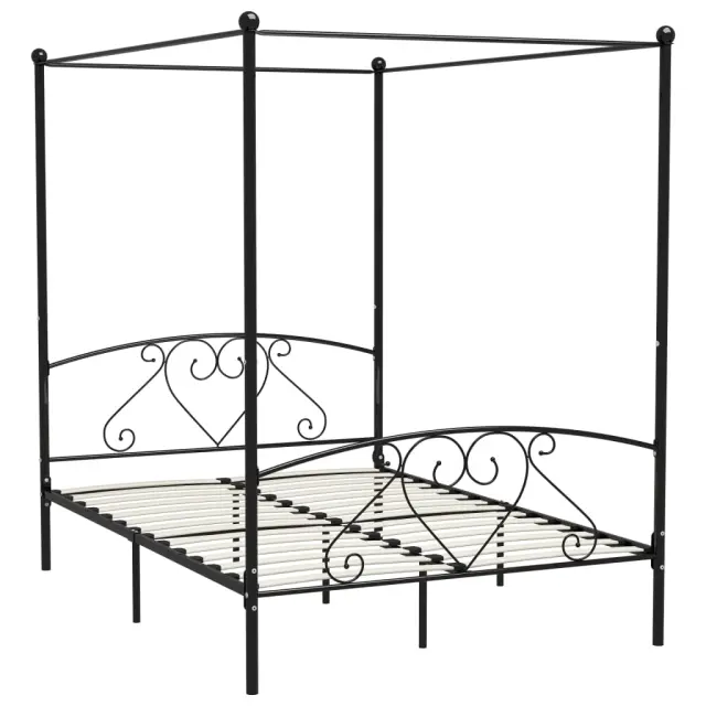 Z našim kovinskim posteljnim okvirjem z ogrodjem za baldahin lahko v svoji spalnici ustvarite elegantno in klasično vzdušje! Postelja je pametno zasnovana z ogrodjem za baldahin za obešanje najljubših zaves, kar bo prispevalo k edinstvenemu šarmu vaše spalnice in ustvarilo dodatno zasebnost. Ta posteljni okvir je izdelan iz trdne kovine, zato je izjemno trden in trpežen. Z vsemi temi lastnostmi boste ponoči dobro spali! Posteljni okvir je potrebno sestaviti. Upoštevajte, da paket vsebuje samo posteljni okvir s podom iz letvic. Vzmetnica ni priložena. V naši trgovini si lahko ogledate primerno vzmetnico.Barva: ČrnaMaterial: KovinaCelotne dimenzije: 209 x 147,5 x 198 cm (D x Š x V)Velikost primerne vzmetnice: 140 x 200 cm (Š x D) (vzmetnica ni priložena) 284436