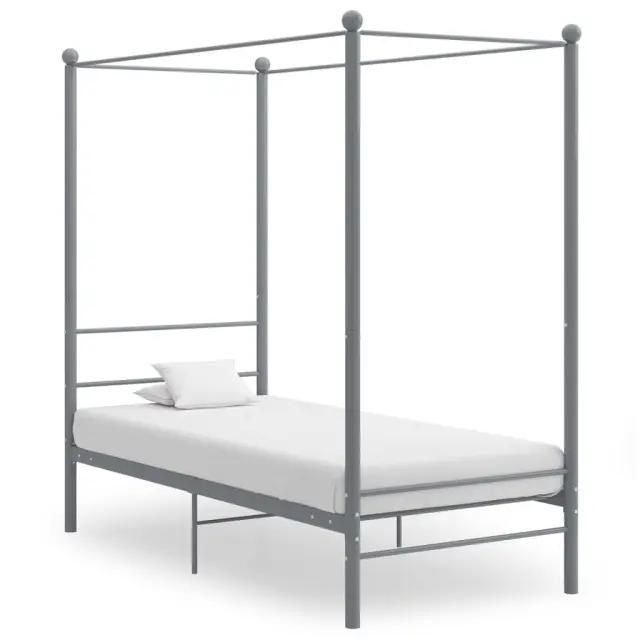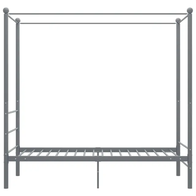 Ta postelja je pametno zasnovana z zgornjim okvirjem za obešanje vaših najljubših zaves ali mreže proti komarjem. Tako lahko svoji spalnici dodate edinstven čar in ustvarite dodatno zasebnost. Posteljni okvir iz prašno premazane kovine je zelo močan in vzdržljiv. Močne letvice ponujajo potrebno podporo in udobje. Z vsemi temi lastnostmi lahko vsako noč uživate v prijetnem spancu na tej postelji! Prosimo, upoštevajte: Paket vsebuje samo posteljni okvir. Vzmetnica ni priložena. V trgovini si lahko ogledate primerno vzmetnico.Barva: SivaMaterial: Kovina s prašnim premazomDimenzije: 208 x 96 x 201 cm (D x Š x V)Velikost primerne vzmetnice: 90 x 200 cm (Š x D) (vzmetnica ni priložena)Potrebno sestavljanje: Da 325053