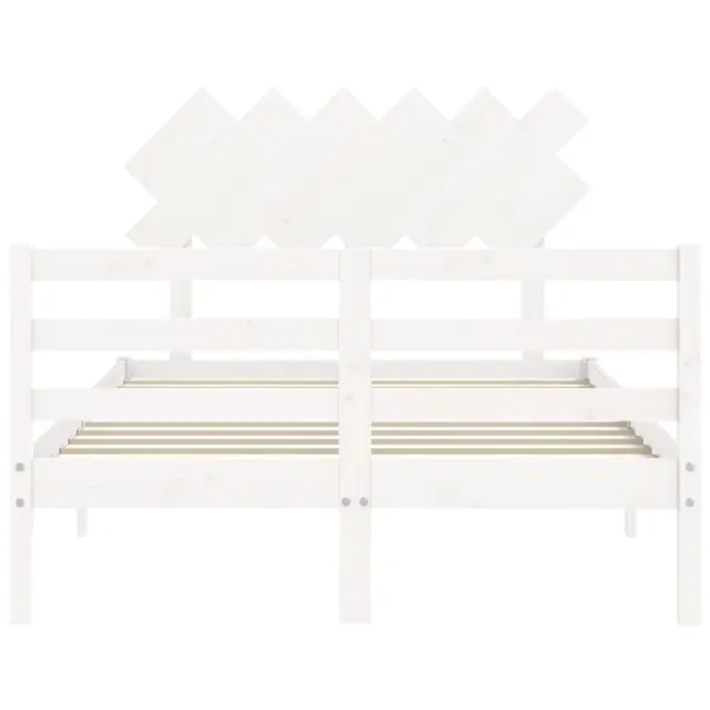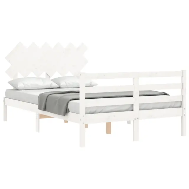 vidaXL Posteljni okvir z vzglavjem bel trden les