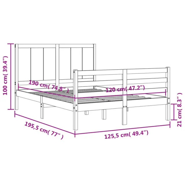 S tem lesenim posteljnim okvirjem lahko uživate v odličnem spancu! To je praktičen in dekorativen dodatek za vaše notranje prostore. Vzdržljiv material: Trdna borovina je čudovit naravni material. Borovina ima ravne vzorce, grče pa dajejo materialu njegov značilen, rustikalen videz. Ta postelja je izdelana iz trdnega borovega lesa, zato je trpežna in vzdržljiva.Letvice iz vezanega lesa: Letvice iz vezanega lesa zagotavljajo dobro porazdelitev teže, kar ležišču zagotavlja prepotrebno oporo in zračnost.Funkcionalno vzglavje in podnožje: Vzglavje in podnožje lesene postelje ohranjata ležišče na mestu. Poleg tega vzglavje zagotavlja odlično oporo hrbtu, ko sedite v postelji in berete ali gledate televizijo. Dobro je vedeti: Vzmetnica ni priložena tej postelji. Ponujamo različno izbiro ležišč. V naši trgovini si lahko ogledate ustrezne vzmetnice.Nekateri deli vzglavja so zaradi prostorskih omejitev zapakirani v škatlah v okvirju postelje.Material: Trdna borovina (neobdelana)Celotne dimenzije postelje: 195,5 x 125,5 x 100 cm (D x Š x V)Višina prostora pod posteljo: 21 cmPrimerna velikost vzmetnice (vzmetnica ni vključena): 120 x 190 cm (Š x D) (4FT Small Double)Potrebno sestavljanje: Da 3194476