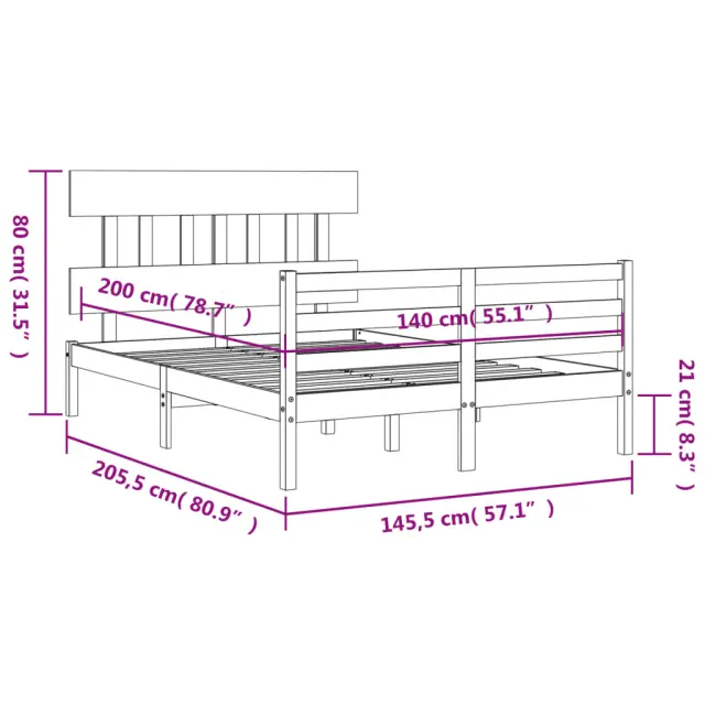 S tem lesenim posteljnim okvirjem lahko uživate v odličnem spancu! To je praktičen in dekorativen dodatek za vaše notranje prostore. Vzdržljiv material: Trdna borovina je čudovit naravni material. Borovina ima ravne vzorce, grče pa dajejo materialu njegov značilen, rustikalen videz. Ta postelja je izdelana iz trdnega borovega lesa, zato je trpežna in vzdržljiva.Letvice iz vezanega lesa: Letvice iz vezanega lesa zagotavljajo dobro porazdelitev teže, kar ležišču zagotavlja prepotrebno oporo in zračnost.Funkcionalno vzglavje in podnožje: Vzglavje in podnožje lesene postelje ohranjata ležišče na mestu. Poleg tega vzglavje zagotavlja odlično oporo hrbtu, ko sedite v postelji in berete ali gledate televizijo. Dobro je vedeti: Vzmetnica ni priložena tej postelji. Ponujamo različno izbiro ležišč. V naši trgovini si lahko ogledate ustrezne vzmetnice.Material: Trdna borovina (neobdelana)Celotne dimenzije postelje: 205,5 x 145,5 x 81 cm (D x Š x V)Višina prostora pod posteljo: 21 cmVelikost primerne vzmetnice: 140 x 200 cm (Š x D) (vzmetnica ni priložena)Potrebno sestavljanje: Da 3195156