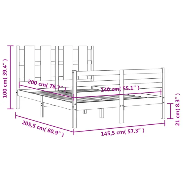 S tem lesenim posteljnim okvirjem lahko uživate v odličnem spancu! To je praktičen in dekorativen dodatek za vaše notranje prostore. Vzdržljiv material: Trdna borovina je čudovit naravni material. Borovina ima ravne vzorce, grče pa dajejo materialu njegov značilen, rustikalen videz. Ta postelja je izdelana iz trdnega borovega lesa, zato je trpežna in vzdržljiva.Letvice iz vezanega lesa: Letvice iz vezanega lesa zagotavljajo dobro porazdelitev teže, kar ležišču zagotavlja prepotrebno oporo in zračnost.Funkcionalno vzglavje in podnožje: Vzglavje in podnožje lesene postelje ohranjata ležišče na mestu. Poleg tega vzglavje zagotavlja odlično oporo hrbtu, ko sedite v postelji in berete ali gledate televizijo. Dobro je vedeti: Vzmetnica ni priložena tej postelji. Ponujamo različno izbiro ležišč. V naši trgovini si lahko ogledate ustrezne vzmetnice.Material: Trdna borovina (neobdelana)Celotne dimenzije: 205,5 x 145,5 x 100 cm (D x Š x V)Višina prostora pod posteljo: 21 cmPrimerna velikost vzmetnice (vzmetnica ni vključena): 140 x 200 cm (Š x D)Potrebno sestavljanje: Da 3194116