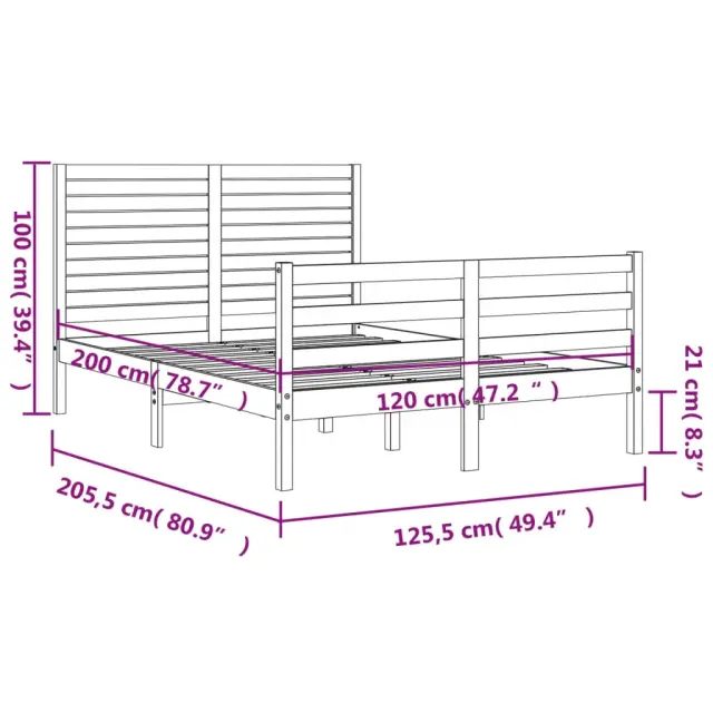 S tem lesenim posteljnim okvirjem lahko uživate v odličnem spancu! To je praktičen in dekorativen dodatek za vaše notranje prostore. Vzdržljiv material: Trdna borovina je čudovit naravni material. Borovina ima ravne vzorce, grče pa dajejo materialu njegov značilen, rustikalen videz. Ta postelja je izdelana iz trdnega borovega lesa, zato je trpežna in vzdržljiva.Letvice iz vezanega lesa: Letvice iz vezanega lesa zagotavljajo dobro porazdelitev teže, kar ležišču zagotavlja prepotrebno oporo in zračnost.Funkcionalno vzglavje in podnožje: Vzglavje in podnožje lesene postelje ohranjata ležišče na mestu. Poleg tega vzglavje zagotavlja odlično oporo hrbtu, ko sedite v postelji in berete ali gledate televizijo. Dobro je vedeti: Vzmetnica ni priložena tej postelji. Ponujamo različno izbiro ležišč. V naši trgovini si lahko ogledate ustrezne vzmetnice.Nekateri deli vzglavja so zaradi prostorskih omejitev zapakirani v škatlah v okvirju postelje.Barva: BelaMaterial: Trdna borovinaDimenzije postelje: 205,5 x 125,5 x 100 cm (D x Š x V)Višina prostora pod posteljo: 21 cmVelikost primerne vzmetnice: 120 x 200 cm (Š x D) (vzmetnica ni priložena)Potrebno sestavljanje: Da 3195022