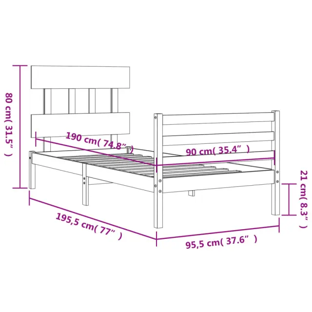 S tem lesenim posteljnim okvirjem lahko uživate v odličnem spancu! To je praktičen in dekorativen dodatek za vaše notranje prostore. Vzdržljiv material: Trdna borovina je čudovit naravni material. Borovina ima ravne vzorce, grče pa dajejo materialu njegov značilen, rustikalen videz. Ta postelja je izdelana iz trdnega borovega lesa, zato je trpežna in vzdržljiva.Letvice iz vezanega lesa: Letvice iz vezanega lesa zagotavljajo dobro porazdelitev teže, kar ležišču zagotavlja prepotrebno oporo in zračnost.Funkcionalno vzglavje in podnožje: Vzglavje in podnožje lesene postelje ohranjata ležišče na mestu. Poleg tega vzglavje zagotavlja odlično oporo hrbtu, ko sedite v postelji in berete ali gledate televizijo. Dobro je vedeti: Vzmetnica ni priložena tej postelji. Ponujamo različno izbiro ležišč. V naši trgovini si lahko ogledate ustrezne vzmetnice.Material: Trdna borovina (neobdelana)Celotne dimenzije postelje: 195,5 x 95,5 x 80 cm (D x Š x V)Višina prostora pod posteljo: 21 cmPrimerna velikost vzmetnice (vzmetnica ni vključena): 90 x 190 cm (Š x D) (3FT Single)Potrebno sestavljanje: Da 3195121