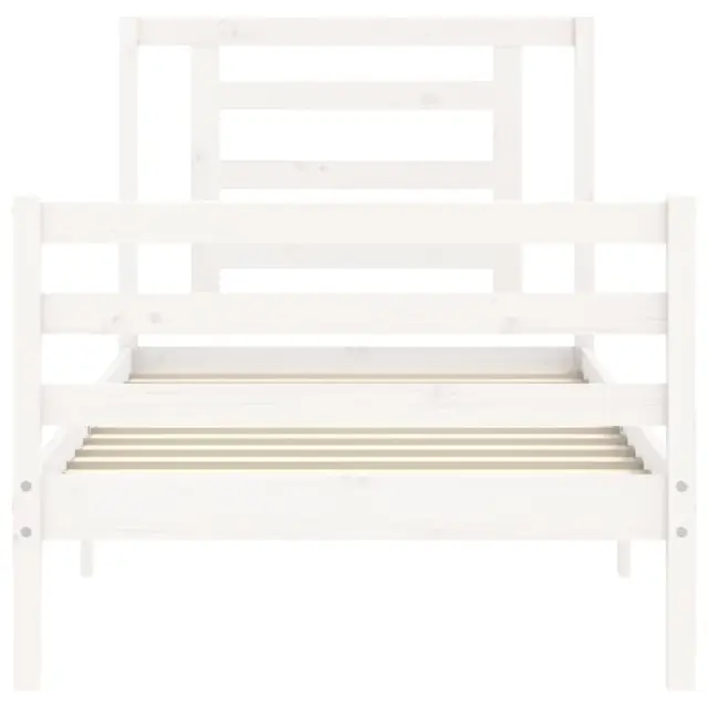 S tem lesenim posteljnim okvirjem lahko uživate v odličnem spancu! To je praktičen in dekorativen dodatek za vaše notranje prostore. Vzdržljiv material: Trdna borovina je čudovit naravni material. Borovina ima ravne vzorce, grče pa dajejo materialu njegov značilen, rustikalen videz. Ta postelja je izdelana iz trdnega borovega lesa, zato je trpežna in vzdržljiva.Letvice iz vezanega lesa: Letvice iz vezanega lesa zagotavljajo dobro porazdelitev teže, kar ležišču zagotavlja prepotrebno oporo in zračnost.Funkcionalno vzglavje in podnožje: Vzglavje in podnožje lesene postelje ohranjata ležišče na mestu. Poleg tega vzglavje zagotavlja odlično oporo hrbtu, ko sedite v postelji in berete ali gledate televizijo. Dobro je vedeti: Vzmetnica ni priložena tej postelji. Ponujamo različno izbiro ležišč. V naši trgovini si lahko ogledate ustrezne vzmetnice.Nekateri deli vzglavja so zaradi prostorskih omejitev zapakirani v škatlah v okvirju postelje.Barva: BelaMaterial: Trdna borovinaMaterial letvic: Vezan lesCelotne dimenzije postelje: 195,5 x 95,5 x 100 cm (D x Š x V)Višina prostora pod posteljo: 21 cmPrimerna velikost vzmetnice (vzmetnica ni vključena): 90 x 190 cm (Š x D) (3FT Single)Potrebno sestavljanje: Da 3194667