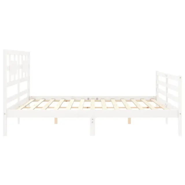 S tem lesenim posteljnim okvirjem lahko uživate v odličnem spancu! To je praktičen in dekorativen dodatek za vaše notranje prostore. Vzdržljiv material: Trdna borovina je čudovit naravni material. Borovina ima ravne vzorce, grče pa dajejo materialu njegov značilen, rustikalen videz. Ta postelja je izdelana iz trdnega borovega lesa, zato je trpežna in vzdržljiva.Letvice iz vezanega lesa: Letvice iz vezanega lesa zagotavljajo dobro porazdelitev teže, kar ležišču zagotavlja prepotrebno oporo in zračnost.Funkcionalno vzglavje in podnožje: Vzglavje in podnožje lesene postelje ohranjata ležišče na mestu. Poleg tega vzglavje zagotavlja odlično oporo hrbtu, ko sedite v postelji in berete ali gledate televizijo. Dobro je vedeti: Vzmetnica ni priložena tej postelji. Ponujamo različno izbiro ležišč. V naši trgovini si lahko ogledate ustrezne vzmetnice.Nekateri deli vzglavja so zaradi prostorskih omejitev zapakirani v škatlah v okvirju postelje.Barva: BelaMaterial: Trdna borovinaCelotne dimenzije: 205,5 x 185,5 x 100 cm (D x Š x V)Višina prostora pod posteljo: 21 cmPrimerna velikost vzmetnice (vzmetnica ni vključena): 180 x 200 cm (Š x D) (6FT Super King)Potrebno sestavljanje: Da 3194457