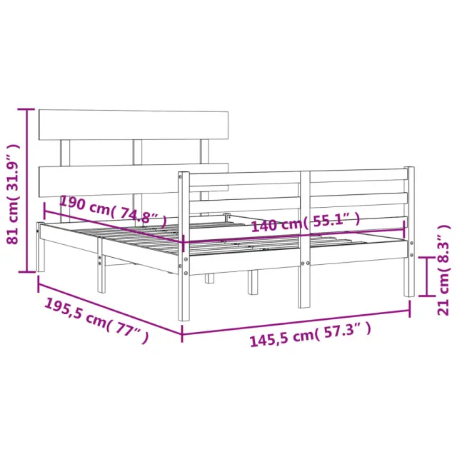 S tem lesenim posteljnim okvirjem lahko uživate v odličnem spancu! To je praktičen in dekorativen dodatek za vaše notranje prostore. Vzdržljiv material: Trdna borovina je čudovit naravni material. Borovina ima ravne vzorce, grče pa dajejo materialu njegov značilen, rustikalen videz. Ta postelja je izdelana iz trdnega borovega lesa, zato je trpežna in vzdržljiva.Letvice iz vezanega lesa: Letvice iz vezanega lesa zagotavljajo dobro porazdelitev teže, kar ležišču zagotavlja prepotrebno oporo in zračnost.Funkcionalno vzglavje in podnožje: Vzglavje in podnožje lesene postelje ohranjata ležišče na mestu. Poleg tega vzglavje zagotavlja odlično oporo hrbtu, ko sedite v postelji in berete ali gledate televizijo. Dobro je vedeti: Vzmetnica ni priložena tej postelji. Ponujamo različno izbiro ležišč. V naši trgovini si lahko ogledate ustrezne vzmetnice.Material: Trdna borovina (neobdelana)Celotne dimenzije postelje: 195,5 x 145,5 x 81 cm (D x Š x V)Višina prostora pod posteljo: 21 cmVelikost primerne vzmetnice: 140 x 190 cm (Š x D) (vzmetnica ni priložena)Potrebno sestavljanje: Da 3195071