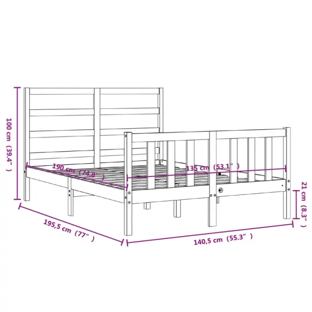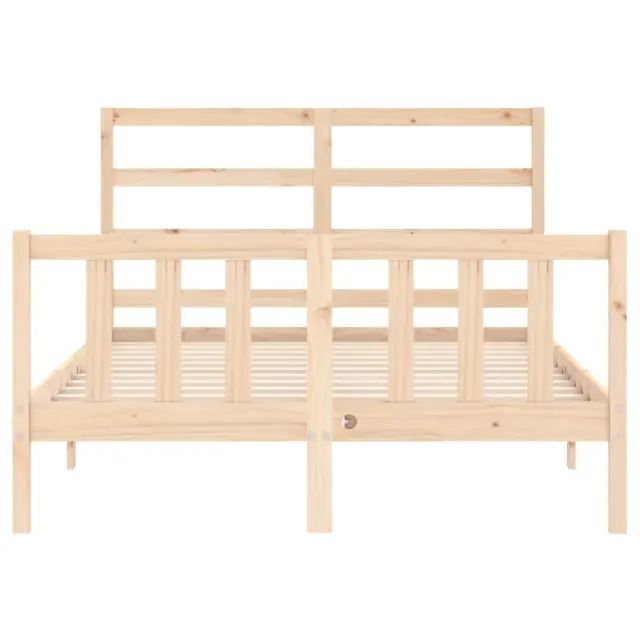 S tem lesenim posteljnim okvirjem lahko uživate v odličnem spancu! To je praktičen in dekorativen dodatek za vaše notranje prostore. Vzdržljiv material: Trdna borovina je čudovit naravni material. Borovina ima ravne vzorce, grče pa dajejo materialu njegov značilen, rustikalen videz. Ta postelja je izdelana iz trdnega borovega lesa, zato je trpežna in vzdržljiva.Letvice iz vezanega lesa: Letvice iz vezanega lesa zagotavljajo dobro porazdelitev teže, kar ležišču zagotavlja prepotrebno oporo in zračnost.Funkcionalno vzglavje in podnožje: Vzglavje in podnožje lesene postelje ohranjata ležišče na mestu. Poleg tega vzglavje zagotavlja odlično oporo hrbtu, ko sedite v postelji in berete ali gledate televizijo. Dobro je vedeti: Vzmetnica ni priložena tej postelji. Ponujamo različno izbiro ležišč. V naši trgovini si lahko ogledate ustrezne vzmetnice.Material: Trdna borovina (neobdelana)Celotne dimenzije postelje: 195,5 x 140,5 x 100 cm (D x Š x V)Višina prostora pod posteljo: 21 cmPrimerna velikost vzmetnice (vzmetnica ni vključena): 135 x 190 cm (Š x G) (4FT6 Double)Potrebno sestavljanje: Da 3191881