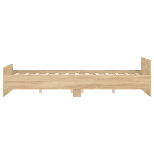 Zagotovite si boljši spanec s tem posteljnim okvirjem! Je prijeten dodatek za vsako spalnico. Vzdržljiv material: Inženirski les se ponaša z izjemno kakovostjo, gladko površino ter močjo, stabilnostjo in odpornostjo na vlago.Funkcionalno vzglavje in podnožje: Vzglavje in podnožje posteljnega dna ohranjata ležišče na mestu. Poleg tega vzglavje zagotavlja odlično oporo hrbtu, ko sedite v postelji in berete ali gledate televizijo.Trdne letvice: Letvice iz vezanega lesa omogočajo dobro porazdelitev teže in zagotavljajo, da vzmetnica ostane na mestu ob vsakem zasuku in obračanju med spanjem. Dobro je vedeti:Vzmetnica ni priložena tej postelji. Ponujamo različno izbiro ležišč. V naši trgovini si lahko ogledate ustrezne vzmetnice.Barva: Sonoma hrast Material posteljnega okvirja: Inženirski les, trdna borovinaMaterial letvic: Vezan lesCelotne dimenzije: 203 x 163 x 50 cm (D x Š x V)Velikost primerne vzmetnice: 160 x 200 cm (Š x D) (vzmetnica ni priložena)Potrebno sestavljanje: Da 3203763