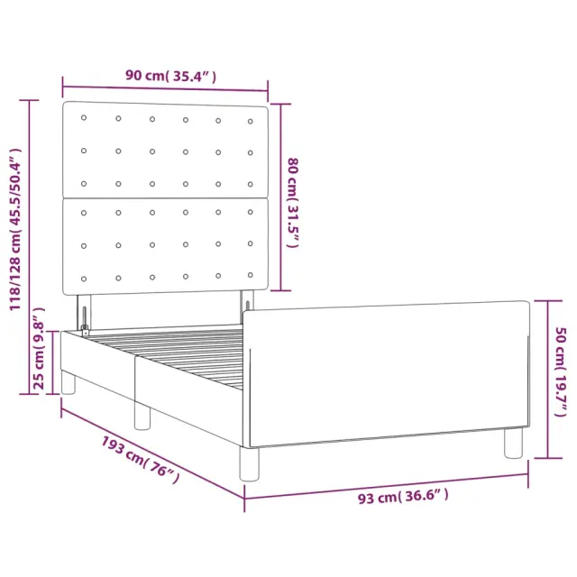 Zagotovite si boljši spanec s tem posteljnim okvirjem z vzglavjem! Je prijeten dodatek za vsako spalnico. Mehak žamet: Žamet je mehka in razkošna tkanina, ki jo prepoznamo po gostem kupu enakomerno rezanih gladkih vlaken. Žametna tkanina ima značilen mehak občutek, zaradi česar je prijetna na dotik.Nastavljiva višina: Vzglavje postelje je nastavljivo po višini po vaših željah.Podporne noge: Postelja je podprta s čvrstimi nogami, ki zagotavljajo njeno stabilnost, varnost in trdnost.Letvice iz vezanega lesa: Letvice iz vezanega lesa omogočajo dobro porazdelitev teže in zagotavljajo, da vzmetnica ostane na mestu ob vsakem zasuku in obračanju med spanjem.Udobna opora: To vzglavje za posteljo vam zagotavlja odlično oporo za hrbet, ko sedite na postelji in berete ali gledate filme. Opomba:Paket vsebuje samo posteljni okvir. Vzmetnica ni priložena. V naši trgovini si lahko ogledate ustrezne vzmetnice.Vsakemu izdelku je priložen priročnik za enostavno sestavljanje.Barva: ČrnaMaterial: Žamet (100 % poliester), trden macesnov les, vezan les, inženirski lesMaterial polnila: PenaCelotne dimenzije: 193 x 93 x 118/128 cm (D x Š x V)Velikost primerne vzmetnice: 90 x 190 cm (Š x D) (vzmetnica ni priložena)Paket vsebuje:1 x Posteljni okvir z vznožjem1 x Vzglavje 3125973
