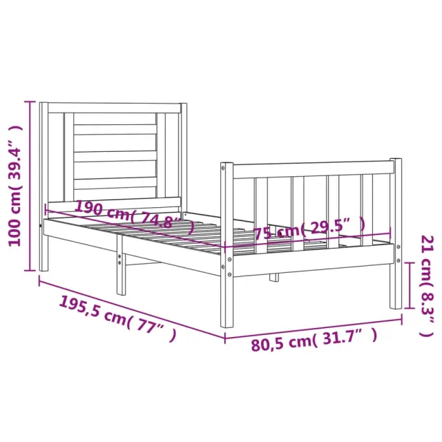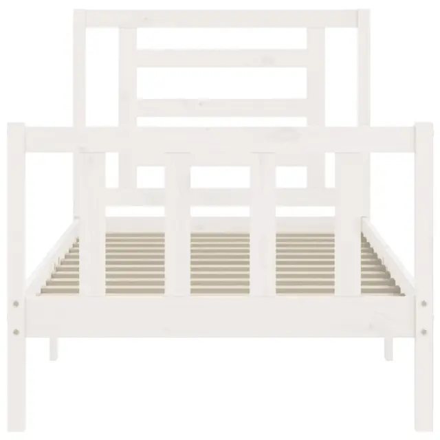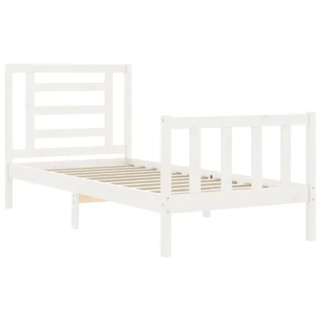 S tem lesenim posteljnim okvirjem lahko uživate v odličnem spancu! To je praktičen in dekorativen dodatek za vaše notranje prostore. Vzdržljiv material: Trdna borovina je čudovit naravni material. Borovina ima ravne vzorce, grče pa dajejo materialu njegov značilen, rustikalen videz. Ta postelja je izdelana iz trdnega borovega lesa, zato je trpežna in vzdržljiva.Letvice iz vezanega lesa: Letvice iz vezanega lesa zagotavljajo dobro porazdelitev teže, kar ležišču zagotavlja prepotrebno oporo in zračnost.Funkcionalno vzglavje in podnožje: Vzglavje in podnožje lesene postelje ohranjata ležišče na mestu. Poleg tega vzglavje zagotavlja odlično oporo hrbtu, ko sedite v postelji in berete ali gledate televizijo. Dobro je vedeti:Vzmetnica ni priložena tej postelji. Ponujamo različno izbiro ležišč. V naši trgovini si lahko ogledate ustrezne vzmetnice.Nekateri deli vzglavja so zaradi prostorskih omejitev zapakirani v škatlah v okvirju postelje.Barva: BelaMaterial: Trdna borovinaCelotne dimenzije postelje: 195,5 x 80,5 x 100 cm (D x Š x V)Višina prostora pod posteljo: 21 cmPrimerna velikost vzmetnice (vzmetnica ni vključena): 75 x 190 cm (Š x D) (2FT6 Small Single)Potrebno sestavljanje: Da 3192842