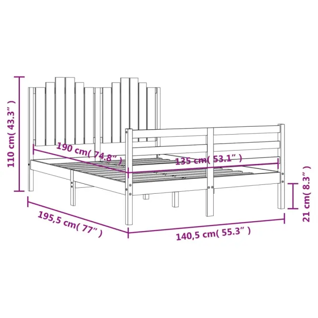 S tem lesenim posteljnim okvirjem lahko uživate v odličnem spancu! To je praktičen in dekorativen dodatek za vaše notranje prostore. Vzdržljiv material: Trdna borovina je čudovit naravni material. Borovina ima ravne vzorce, grče pa dajejo materialu njegov značilen, rustikalen videz. Ta postelja je izdelana iz trdnega borovega lesa, zato je trpežna in vzdržljiva.Letvice iz vezanega lesa: Letvice iz vezanega lesa zagotavljajo dobro porazdelitev teže, kar zagotavlja ležišču prepotrebno oporo in zračnost.Funkcionalno vzglavje in podnožje: Vzglavje in podnožje lesene postelje ohranjata ležišče na mestu. Poleg tega vzglavje zagotavlja odlično oporo hrbtu, ko sedite v postelji in berete ali gledate televizijo. Dobro je vedeti: Vzmetnica ni priložena tej postelji. Ponujamo različno izbiro ležišč. V naši trgovini si lahko ogledate ustrezne vzmetnice.Nekateri deli vzglavja so zaradi prostorskih omejitev zapakirani v škatlah v okvirju postelje.Material: Trdna borovina (neobdelana)Celotne dimenzije postelje: 195,5 x 140,5 x 110 cm (D x Š x V)Višina prostora pod posteljo: 21 cmPrimerna velikost vzmetnice (vzmetnica ni vključena): 135 x 190 cm (Š x D) (4FT6 Double)Potrebno sestavljanje: Da 3194156