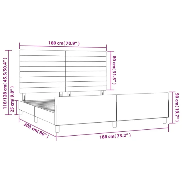 Zagotovite si boljši spanec s tem posteljnim okvirjem z vzglavjem! Je prijeten dodatek za vsako spalnico. Mehak žamet: Žamet je mehka in razkošna tkanina, ki jo prepoznamo po gostem kupu enakomerno rezanih gladkih vlaken. Žametna tkanina ima značilen mehak občutek, zaradi česar je prijetna na dotik.Nastavljiva višina: Vzglavje postelje je nastavljivo po višini po vaših željah.Podporne noge: Postelja je podprta s čvrstimi nogami, ki zagotavljajo njeno stabilnost, varnost in trdnost.Letvice iz vezanega lesa: Letvice iz vezanega lesa omogočajo dobro porazdelitev teže in zagotavljajo, da vzmetnica ostane na mestu ob vsakem zasuku in obračanju med spanjem.Udobna opora: To vzglavje za posteljo vam zagotavlja odlično oporo za hrbet, ko sedite na postelji in berete ali gledate filme. Opomba:Paket vsebuje samo posteljni okvir. Vzmetnica ni priložena. V naši trgovini si lahko ogledate ustrezne vzmetnice.Vsakemu izdelku je priložen priročnik za enostavno sestavljanje.Barva: Temno modraMaterial: Žamet (100 % poliester), trden macesnov les, vezan les, inženirski lesMaterial polnila: PenaCelotne dimenzije: 203 x 186 x 118/128 cm (D x Š x V)Velikost primerne vzmetnice: 180 x 200 cm (Š x D) (vzmetnica ni priložena)Paket vsebuje:1 x Posteljni okvir z vznožjem1 x Vzglavje 3125834