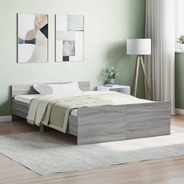 vidaXL Posteljni okvir z vzglavjem in vznožjem siva sonoma 120x200 cm