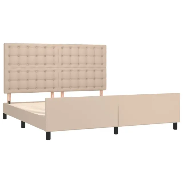 Zagotovite si boljši spanec s tem posteljnim okvirjem z vzglavjem! Je prijeten dodatek za vsako spalnico. Trpežno umetno usnje: Vrhunsko umetno usnje je zelo vzdržljiv material. Je odporno na madeže, zato ga lahko preprosto čistite z vlažno krpo. Gladka površina mu prav tako daje razkošen videz in lepoto pravega usnja.Nastavljiva višina: Vzglavje postelje je nastavljivo po višini po vaših željah.Podporne noge: Postelja je podprta s čvrstimi nogami, ki zagotavljajo njeno stabilnost, varnost in trdnost.Letvice iz vezanega lesa: Letvice iz vezanega lesa omogočajo dobro porazdelitev teže in zagotavljajo, da vzmetnica ostane na mestu ob vsakem zasuku in obračanju med spanjem.Udobna opora: To vzglavje za posteljo vam zagotavlja odlično oporo za hrbet, ko sedite na postelji in berete ali gledate filme. Opomba:Paket vsebuje samo posteljni okvir. Vzmetnica ni priložena. V naši trgovini si lahko ogledate ustrezne vzmetnice.Vsakemu izdelku je priložen priročnik za enostavno sestavljanje.Barva: KapučinoMaterial: Umetno usnje (75 % polivinilklorid, 5 % bombaž, 20 % poliester), trden macesnov les, vezan les, inženirski lesMaterial polnila: PenaCelotne dimenzije: 203 x 186 x 118/128 cm (D x Š x V)Velikost primerne vzmetnice: 180 x 200 cm (Š x D) (vzmetnica ni priložena)Paket vsebuje:1 x Posteljni okvir z vznožjem1 x Vzglavje 3125590
