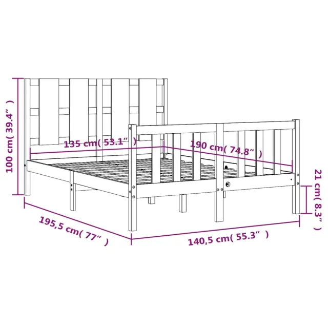 S tem lesenim posteljnim okvirjem lahko uživate v odličnem spancu! To je praktičen in dekorativen dodatek za vaše notranje prostore. Vzdržljiv material: Trdna borovina je čudovit naravni material. Borovina ima ravne vzorce, grče pa dajejo materialu njegov značilen, rustikalen videz. Ta postelja je izdelana iz trdnega borovega lesa, zato je trpežna in vzdržljiva.Letvice iz vezanega lesa: Letvice iz vezanega lesa zagotavljajo dobro porazdelitev teže, kar ležišču zagotavlja prepotrebno oporo in zračnost.Funkcionalno vzglavje in podnožje: Vzglavje in podnožje lesene postelje ohranjata ležišče na mestu. Poleg tega vzglavje zagotavlja odlično oporo hrbtu, ko sedite v postelji in berete ali gledate televizijo. Dobro je vedeti: Vzmetnica ni priložena tej postelji. Ponujamo različno izbiro ležišč. V naši trgovini si lahko ogledate ustrezne vzmetnice.Material: Trdna borovina (neobdelana)Celotne dimenzije postelje: 195,5 x 140,5 x 100 cm (D x Š x V)Višina prostora pod posteljo: 21 cmPrimerna velikost vzmetnice (vzmetnica ni vključena): 135 x 190 cm (Š x D) (4FT6 Double)Potrebno sestavljanje: Da 3192206