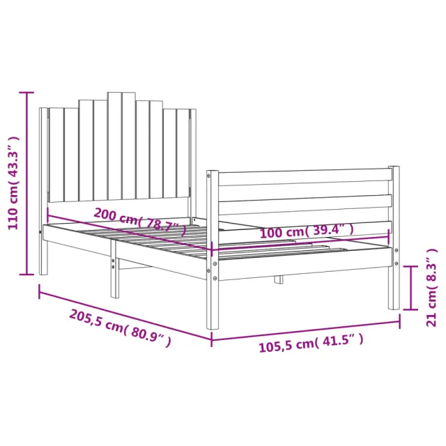 S tem lesenim posteljnim okvirjem lahko uživate v odličnem spancu! To je praktičen in dekorativen dodatek za vaše notranje prostore. Vzdržljiv material: Trdna borovina je čudovit naravni material. Borovina ima ravne vzorce, grče pa dajejo materialu njegov značilen, rustikalen videz. Ta postelja je izdelana iz trdnega borovega lesa, zato je trpežna in vzdržljiva.Letvice iz vezanega lesa: Letvice iz vezanega lesa zagotavljajo dobro porazdelitev teže, kar ležišču zagotavlja prepotrebno oporo in zračnost.Funkcionalno vzglavje in podnožje: Vzglavje in podnožje lesene postelje ohranjata ležišče na mestu. Poleg tega vzglavje zagotavlja odlično oporo hrbtu, ko sedite v postelji in berete ali gledate televizijo. Dobro je vedeti: Vzmetnica ni priložena tej postelji. Ponujamo različno izbiro ležišč. V naši trgovini si lahko ogledate ustrezne vzmetnice.Nekateri deli vzglavja so zaradi prostorskih omejitev zapakirani v škatlah v okvirju postelje.Material: Trdna borovina (neobdelana)Celotne dimenzije postelje: 205,5 x 105,5 x 110 cm (D x Š x V)Višina prostora pod posteljo: 21 cmPrimerna velikost vzmetnice (vzmetnica ni vključena): 100 x 200 cm (Š x D)Potrebno sestavljanje: Da 3194171
