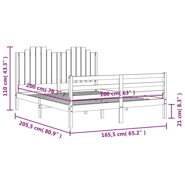 S tem lesenim posteljnim okvirjem lahko uživate v odličnem spancu! To je praktičen in dekorativen dodatek za vaše notranje prostore. Vzdržljiv material: Trdna borovina je čudovit naravni material. Borovina ima ravne vzorce, grče pa dajejo materialu njegov značilen, rustikalen videz. Ta postelja je izdelana iz trdnega borovega lesa, zato je trpežna in vzdržljiva.Letvice iz vezanega lesa: Letvice iz vezanega lesa zagotavljajo dobro porazdelitev teže, kar ležišču zagotavlja prepotrebno oporo in zračnost.Funkcionalno vzglavje in podnožje: Vzglavje in podnožje lesene postelje ohranjata ležišče na mestu. Poleg tega vzglavje zagotavlja odlično oporo hrbtu, ko sedite v postelji in berete ali gledate televizijo. Dobro je vedeti: Vzmetnica ni priložena tej postelji. Ponujamo različno izbiro ležišč. V naši trgovini si lahko ogledate ustrezne vzmetnice.Nekateri deli vzglavja so zaradi prostorskih omejitev zapakirani v škatlah v okvirju postelje.Material: Trdna borovina (neobdelana)Dimenzije postelje: 205,5 x 165,5 x 110 cm (D x Š x V)Višina prostora pod posteljo: 21 cmPrimerna velikost vzmetnice (vzmetnica ni vključena): 160 x 200 cm (Š x G)Potrebno sestavljanje: Da 3194191