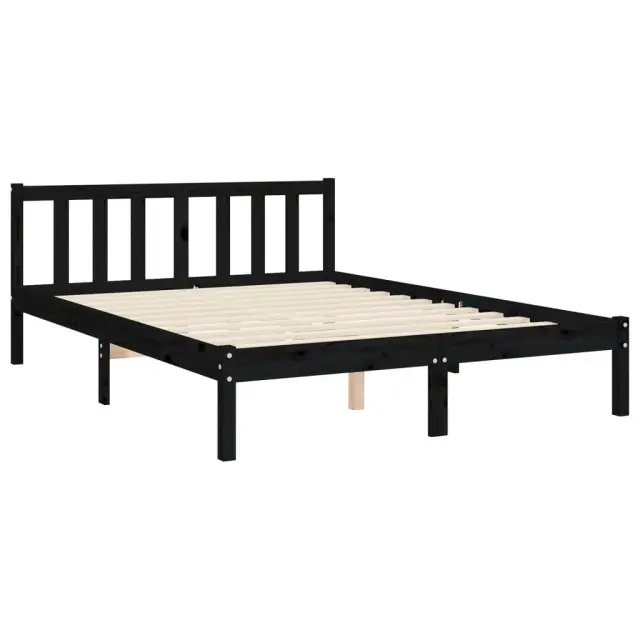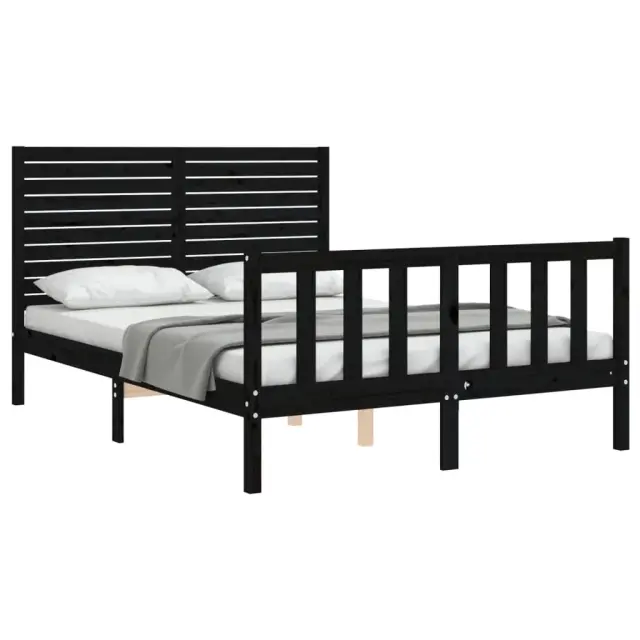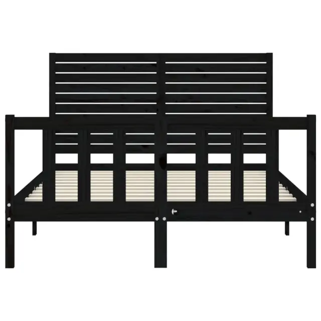 vidaXL Posteljni okvir z vzglavjem črn trden les