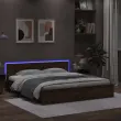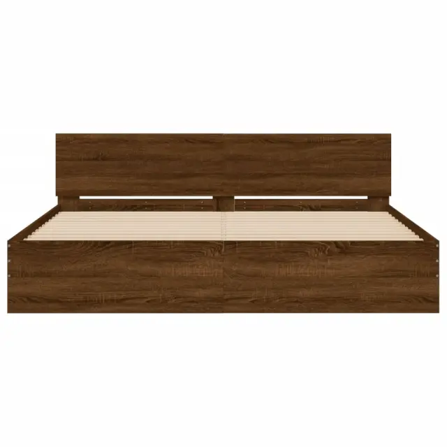 vidaXL Posteljni okvir z vzglavjem in LED rjavi hrast 200x200 cm