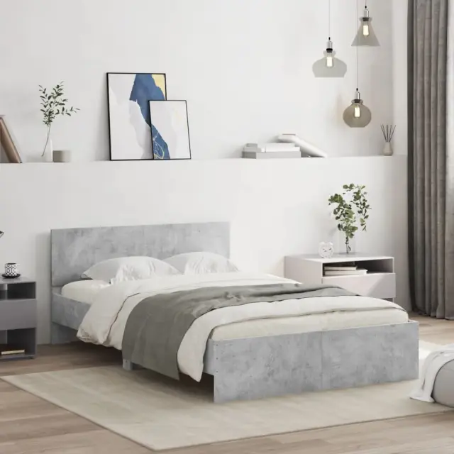 vidaXL Posteljni okvir z vzglavjem betonsko siv 135x190 cm