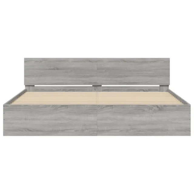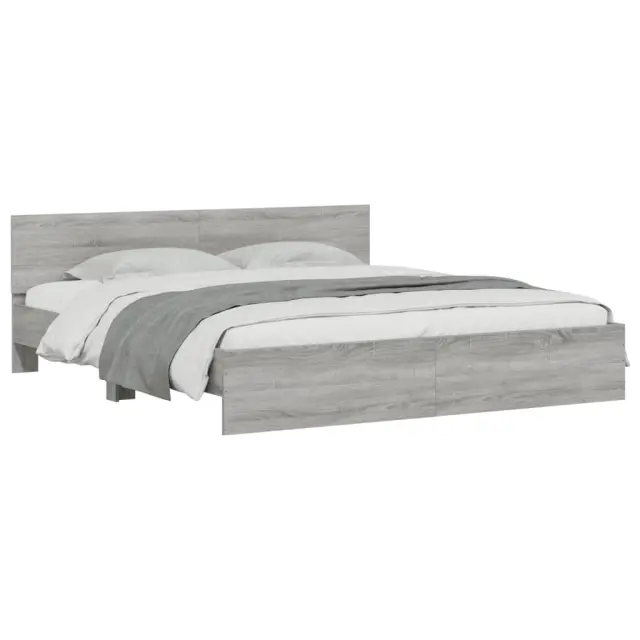 vidaXL Posteljni okvir z vzglavjem in LED siva sonoma 180x200 cm