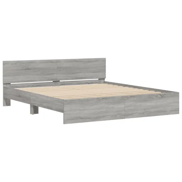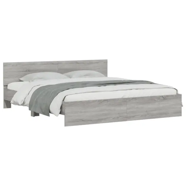 vidaXL Posteljni okvir z vzglavjem siva sonoma 200x200 cm