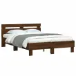 vidaXL Posteljni okvir z vzglavjem rjavi hrast 120x200 cm inž. les