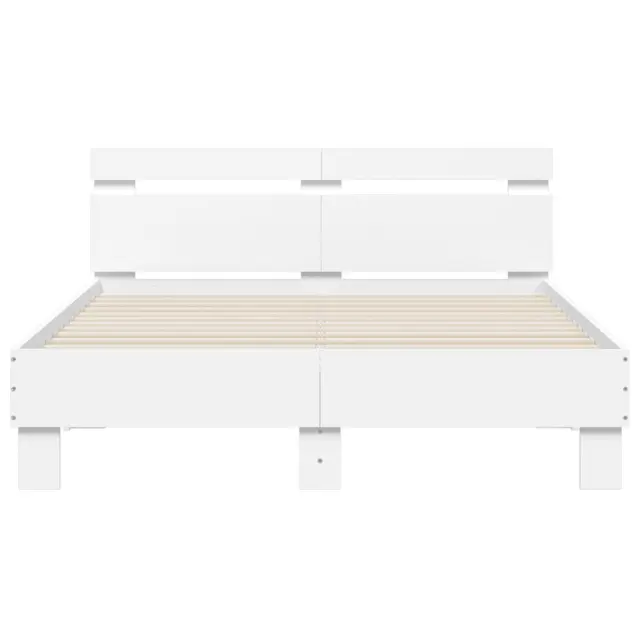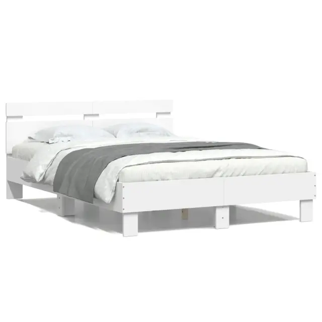 vidaXL Posteljni okvir z vzglavjem in LED bel 120x200 cm