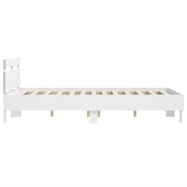 Zagotovite si boljši spanec s tem posteljnim okvirjem z LED diodami! Je prijeten dodatek za vsako spalnico. Vzdržljiv material: Inženirski les se ponaša z izjemno kakovostjo, gladko površino ter močjo, stabilnostjo in odpornostjo na vlago.RGB LED lučke: Postelja je opremljena z živahnimi RGB LED lučkami. Z različnimi prilagodljivimi meniji lahko brez težav spreminjate barvo lučk in celo nastavite njihovo samodejno prilagajanje. Te LED lučke ne izboljšajo le sodobnega videza posteljnega okvirja, ampak tudi prispevajo k njegovi privlačnosti.Odlična opora: Posteljno vzglavje vam zagotavlja odlično oporo za hrbet, medtem ko sedite v postelji in berete ali gledate televizijo.Trdne letvice: Letvice iz vezanega lesa omogočajo dobro porazdelitev teže in zagotavljajo, da vzmetnica ostane na mestu ob vsakem zasuku in obračanju med spanjem. Dobro je vedeti:Vzmetnica ni priložena tej postelji. Ponujamo različno izbiro ležišč. V naši trgovini si lahko ogledate ustrezne vzmetnice.Izdelek ima priključek USB, ki zahteva certificiran vir napajanja 5 V USB (ni priložen).Barva: BelaMaterial posteljnega okvirja: Inženirski lesMaterial letvic: Vezan lesCelotne dimenzije: 203 x 125 x 70 cm (D x Š x V)Velikost primerne vzmetnice: 120 x 200 cm (Š x D) (vzmetnica ni priložena)Potrebno sestavljanje: Da 3207553