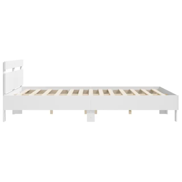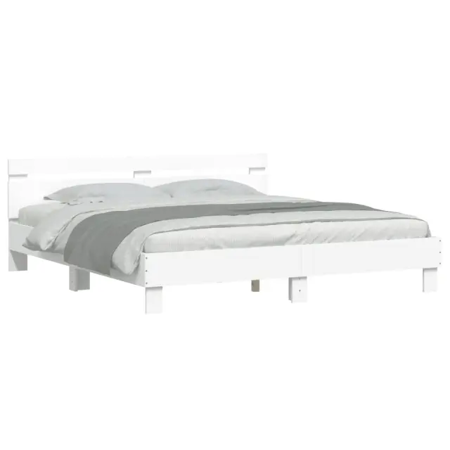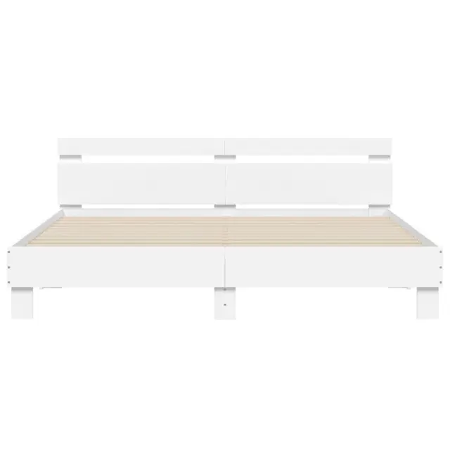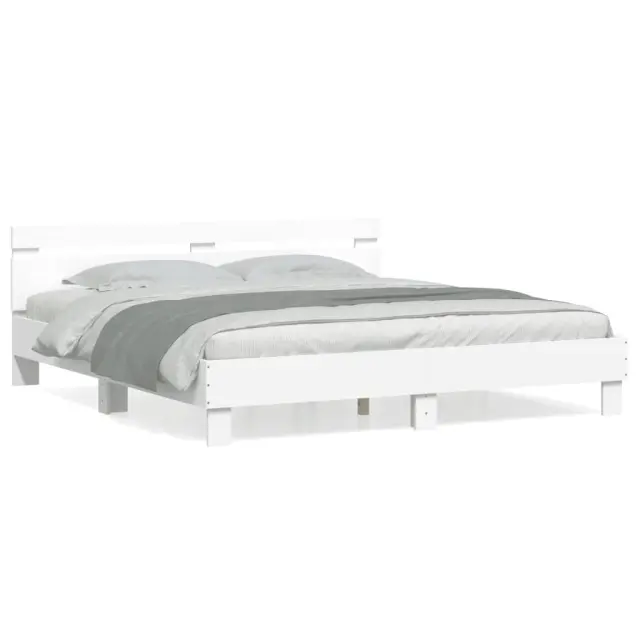 vidaXL Posteljni okvir z vzglavjem bel 200x200 cm inženirski les