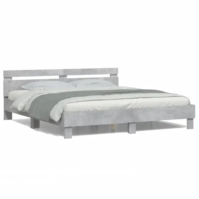 vidaXL Posteljni okvir z vzglavjem in LED betonsko siv 200x200 cm