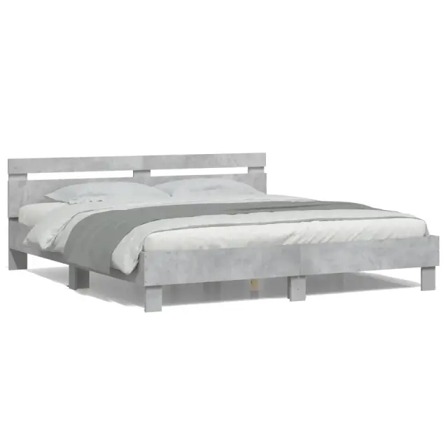 vidaXL Posteljni okvir z vzglavjem in LED betonsko siv 180x200 cm