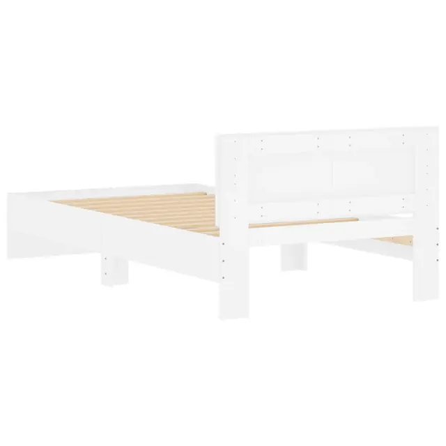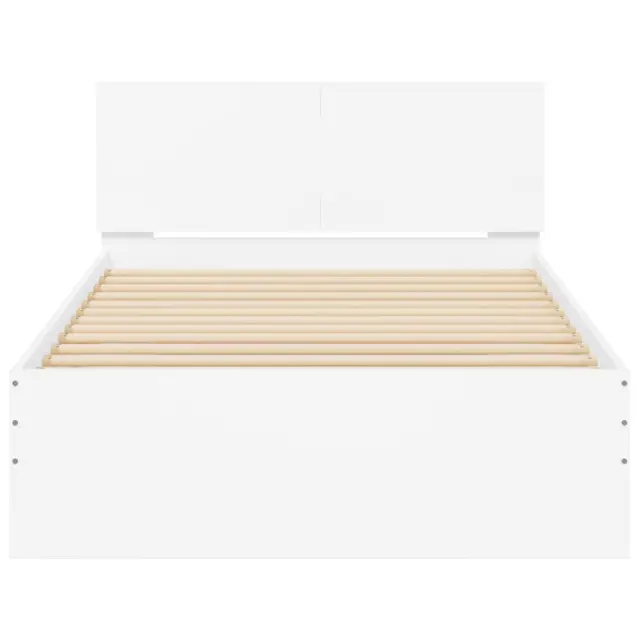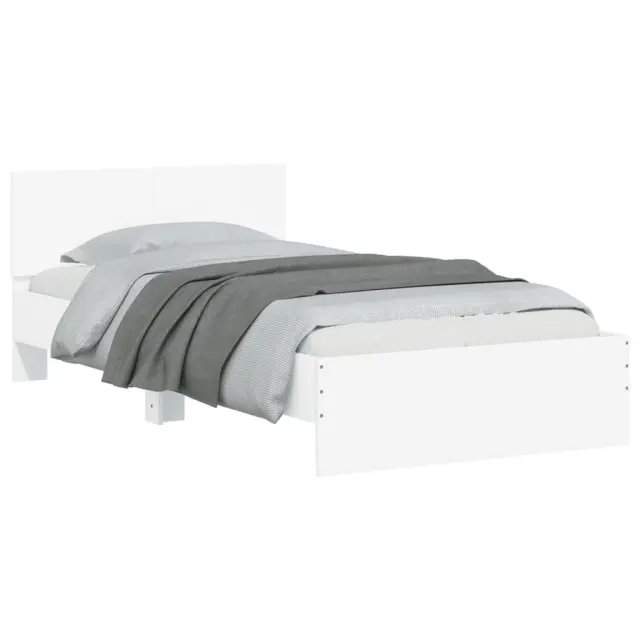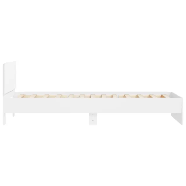 vidaXL Posteljni okvir z vzglavjem bel 100x200 cm inženirski les