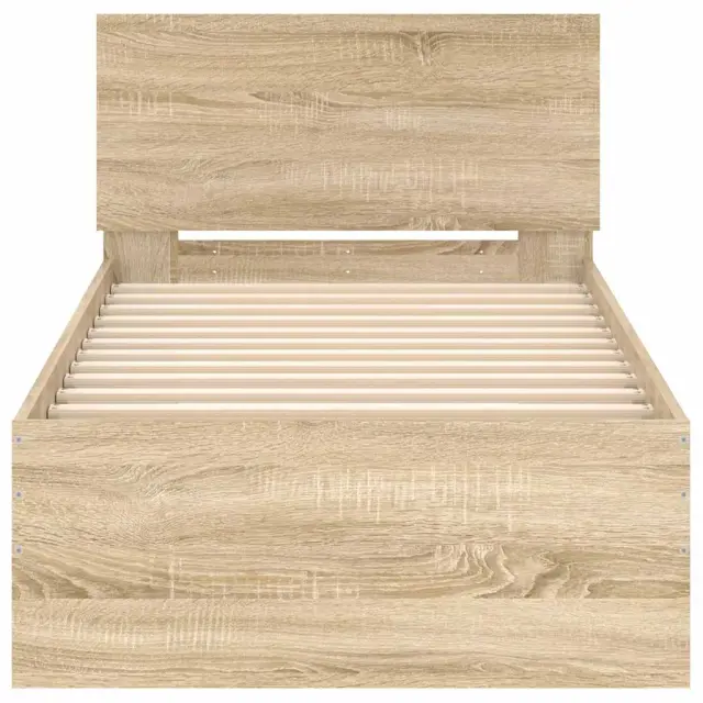 vidaXL Posteljni okvir z vzglavjem sonoma hrast 90x190 cm inž. les